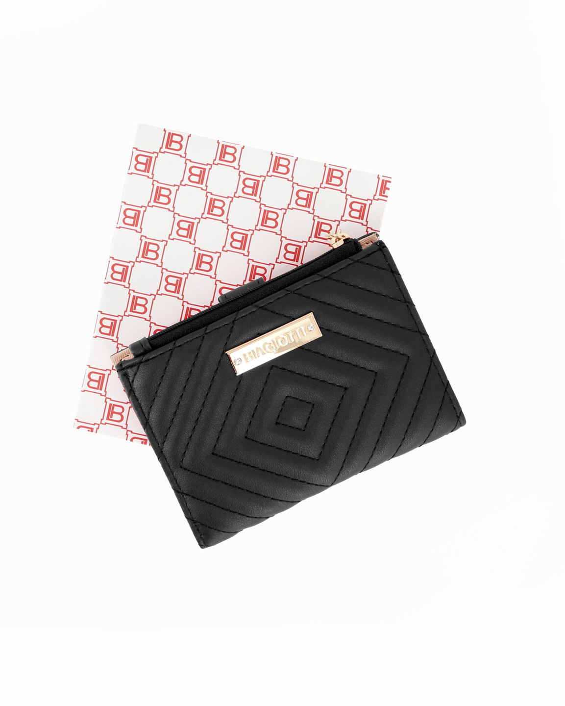 LAURA BIAGIOTTI - Portafoglio nero trapuntato da donna con pattina e taschino portamanete