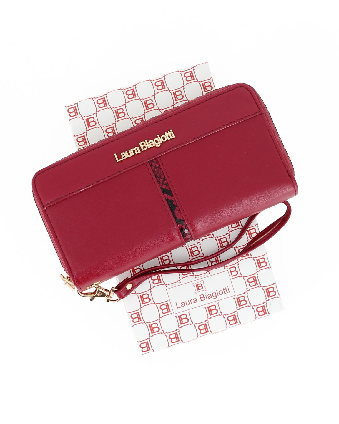 LAURA BIAGIOTTI - Portafoglio rubino da donna con doppia cerniera e inserto in cocco, polsiera removibile