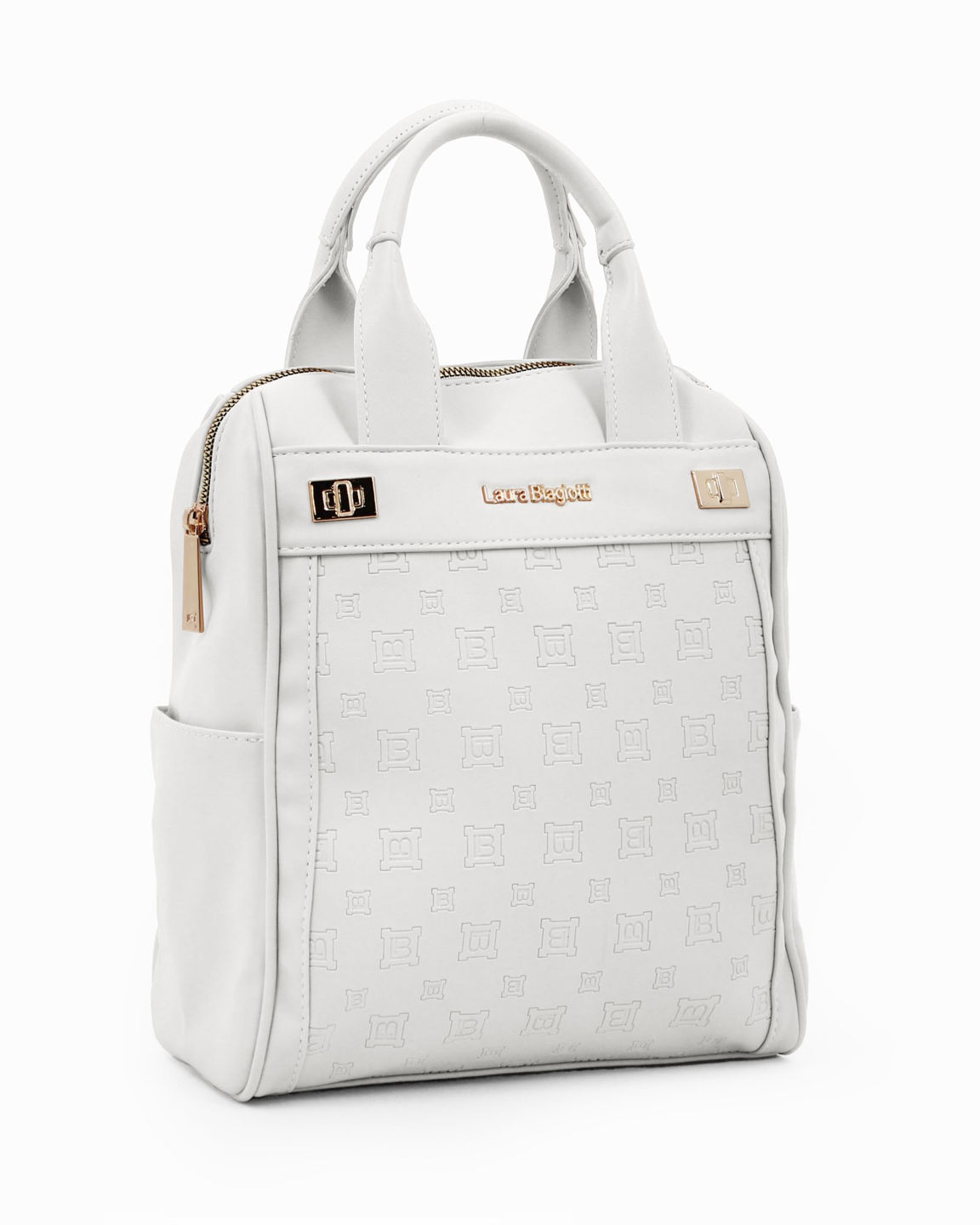 LAURA BIAGIOTTI - Zaino bianco con parte frontale logata e due tasche laterali