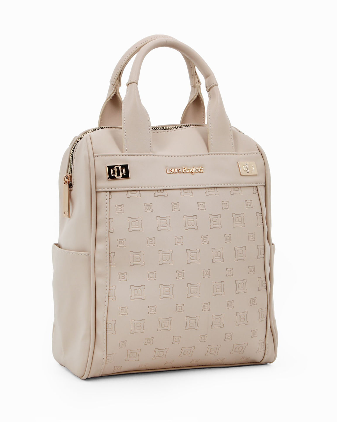 LAURA BIAGIOTTI - Zaino sabbia con parte frontale logata e due tasche laterali