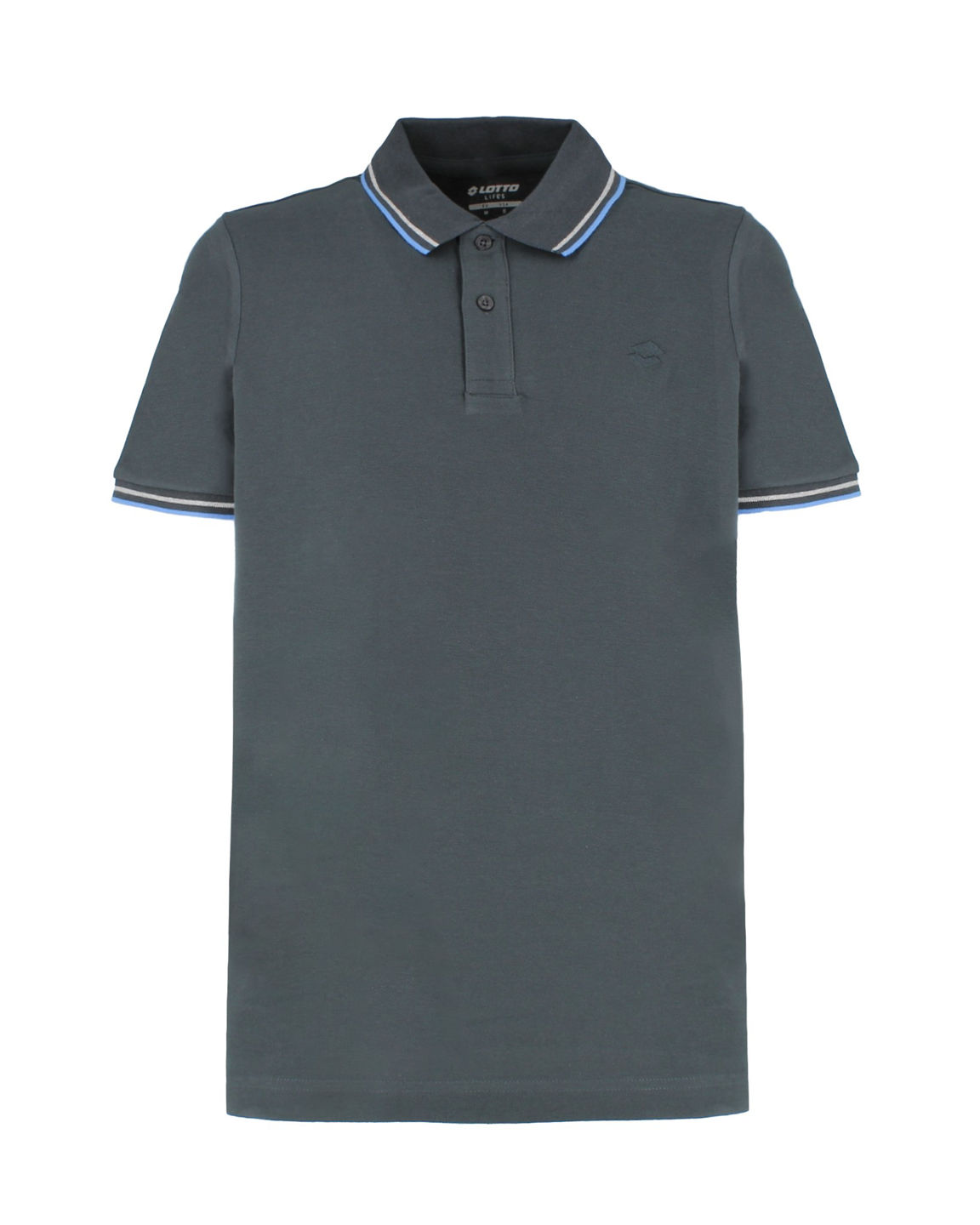 • LOTTO - POLO MEZZA MANICA UOMO GRIGIO SCURO CON RIGHINO GRIGIO E CELESTE CLASSICA - 219238/1SV