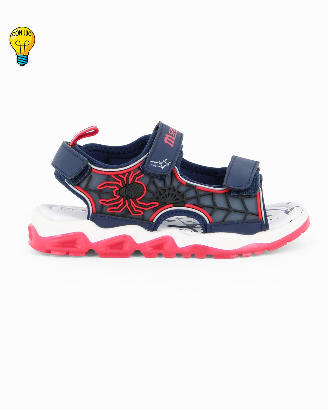 MELANIA - Sandalo blu e rosso da bambino con strappi e luci, numerata 31/36