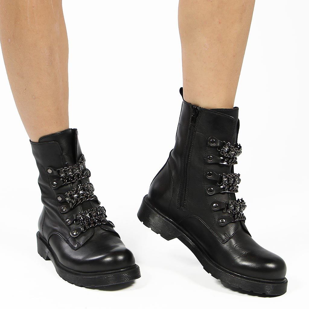 MISS GLOBO - Anfibio nero in VERA PELLE con lacci a catena con dettaglio strass