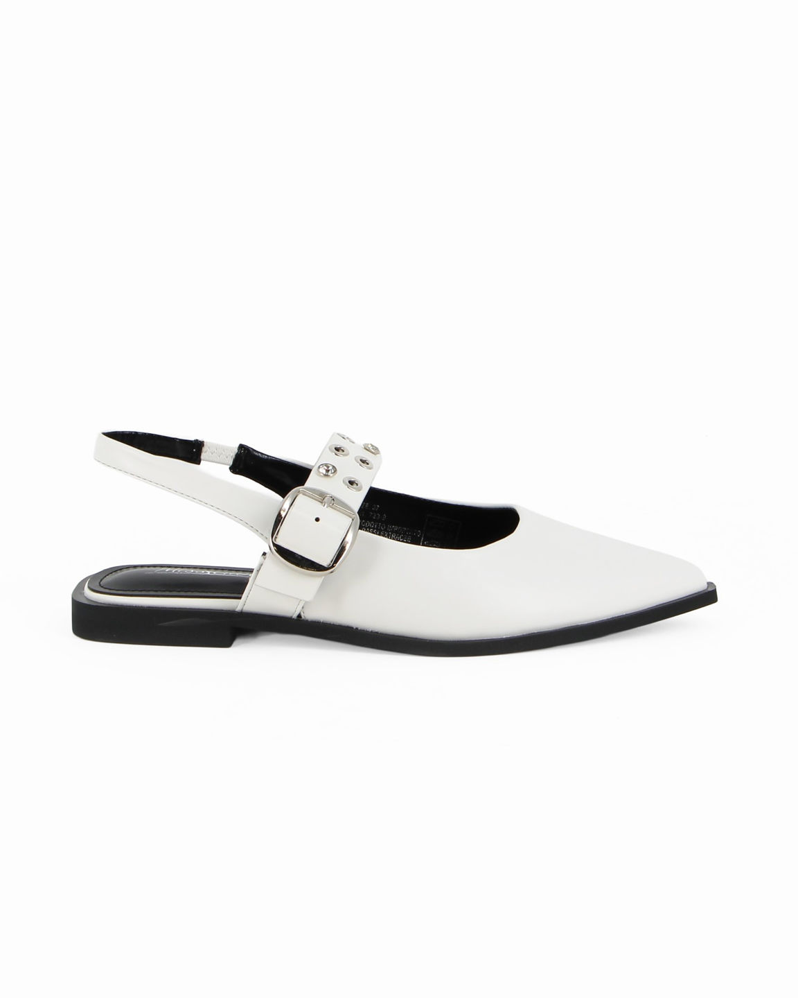 MISS GLOBO - Ballerina slingback bianca a punta con sottopiede in memory foam e cinturino frontale con fibbia