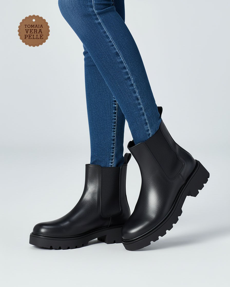 MISS GLOBO - Beatles nero in VERA PELLE con suola track