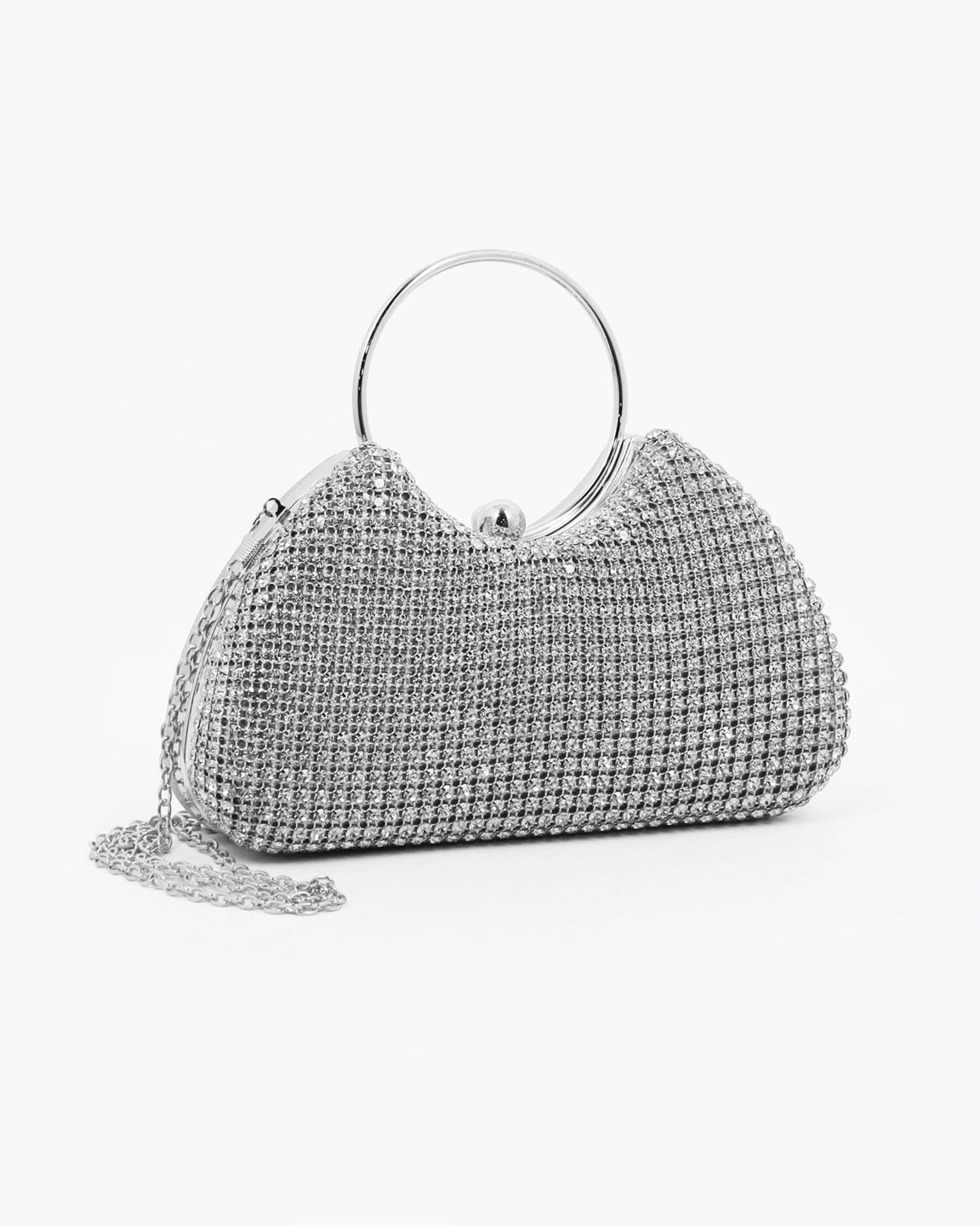 MISS GLOBO - Clutch ad un manico silver con parte frontale in strass, tracolla removibile