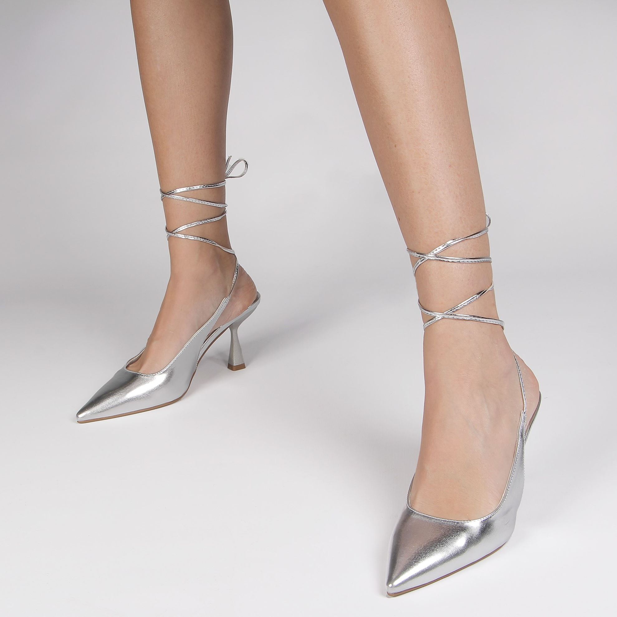 MISS GLOBO - DÉCOLLETÉ ARGENTO CON LACCI E SOLETTA IN VERA PELLE, TACCO 7,5CM