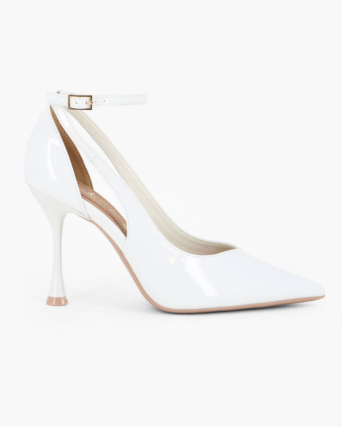 MISS GLOBO - Décolleté bianca in vernice con cinturino alla caviglia, tacco 9,5CM