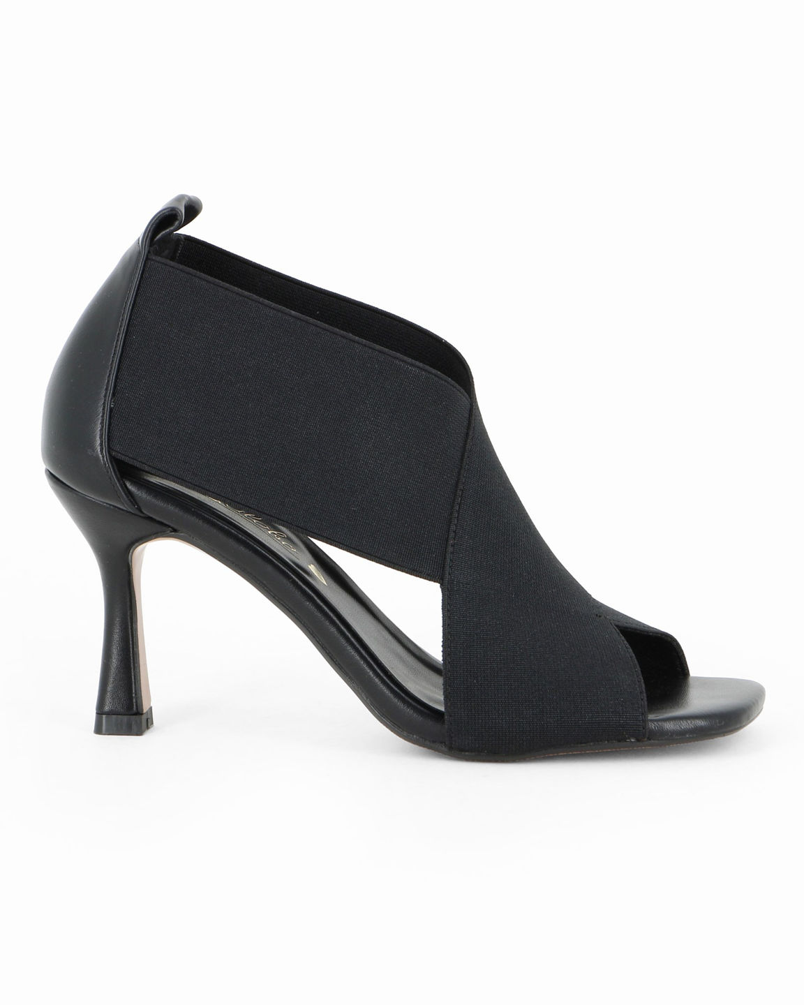 MISS GLOBO - Décolleté nera con punta quadrata e fasce elastiche incrociate, tacco 8CM