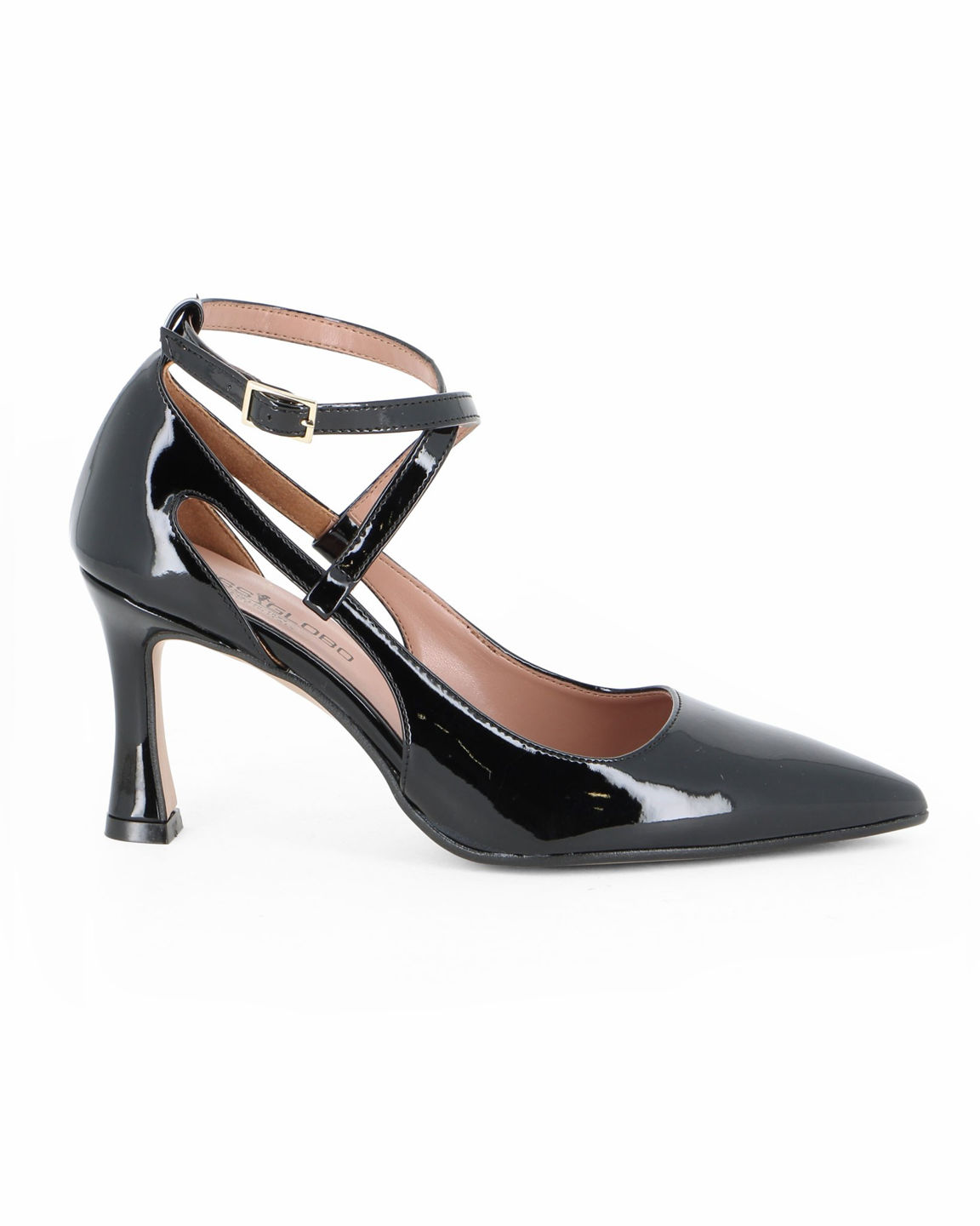 MISS GLOBO - Décolleté nera in vernice con cinturini incrociati, tacco 7,5CM - MADE IN ITALY