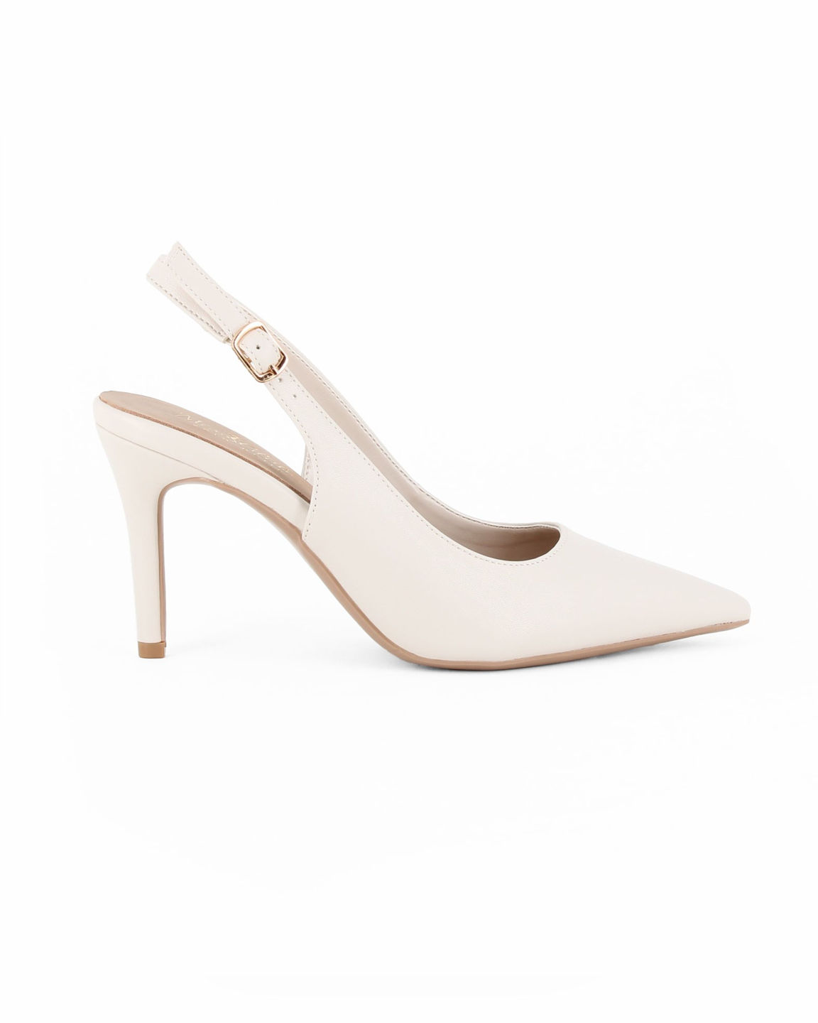 MISS GLOBO - Décolleté slingback avorio con sottopiede in VERA PELLE, tacco 8CM