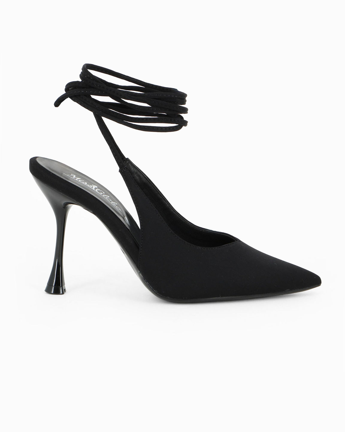 MISS GLOBO - Décolleté slingback lace-up nera in lycra, tacco 9,5CM