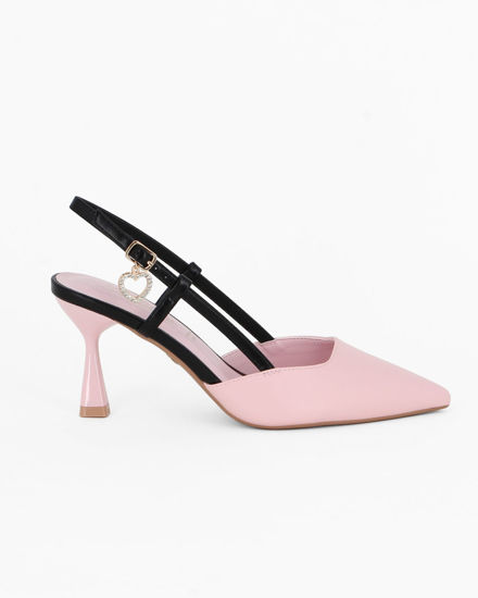 MISS GLOBO - Décolleté slingback rosa e nera con ciondolo cuore in strass e sottopiede in memory foam, tacco 7,5CM