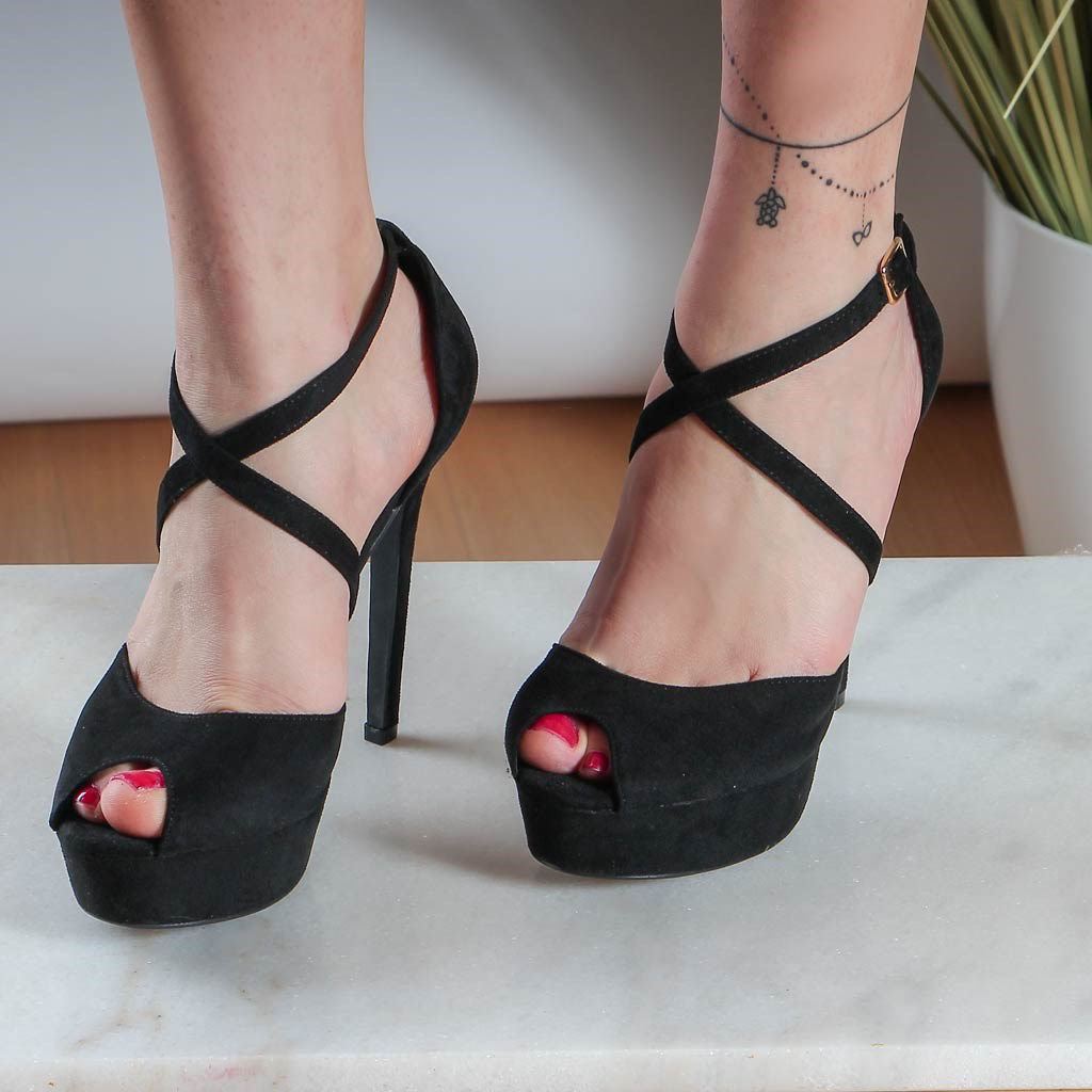MISS GLOBO - Décolleté spuntata con cinturino incrociato e sottopiede in VERA PELLE, tacco 13CM