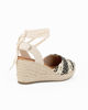 MISS GLOBO - Espadrillas beige e nera con lacci alla caviglia e dettaglio paillettes, zeppa 7,5CM