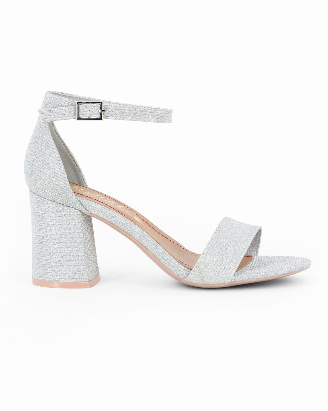 MISS GLOBO - Sandalo argento in lurex con sottopiede in VERA PELLE e cinturino alla caviglia, tacco 7CM
