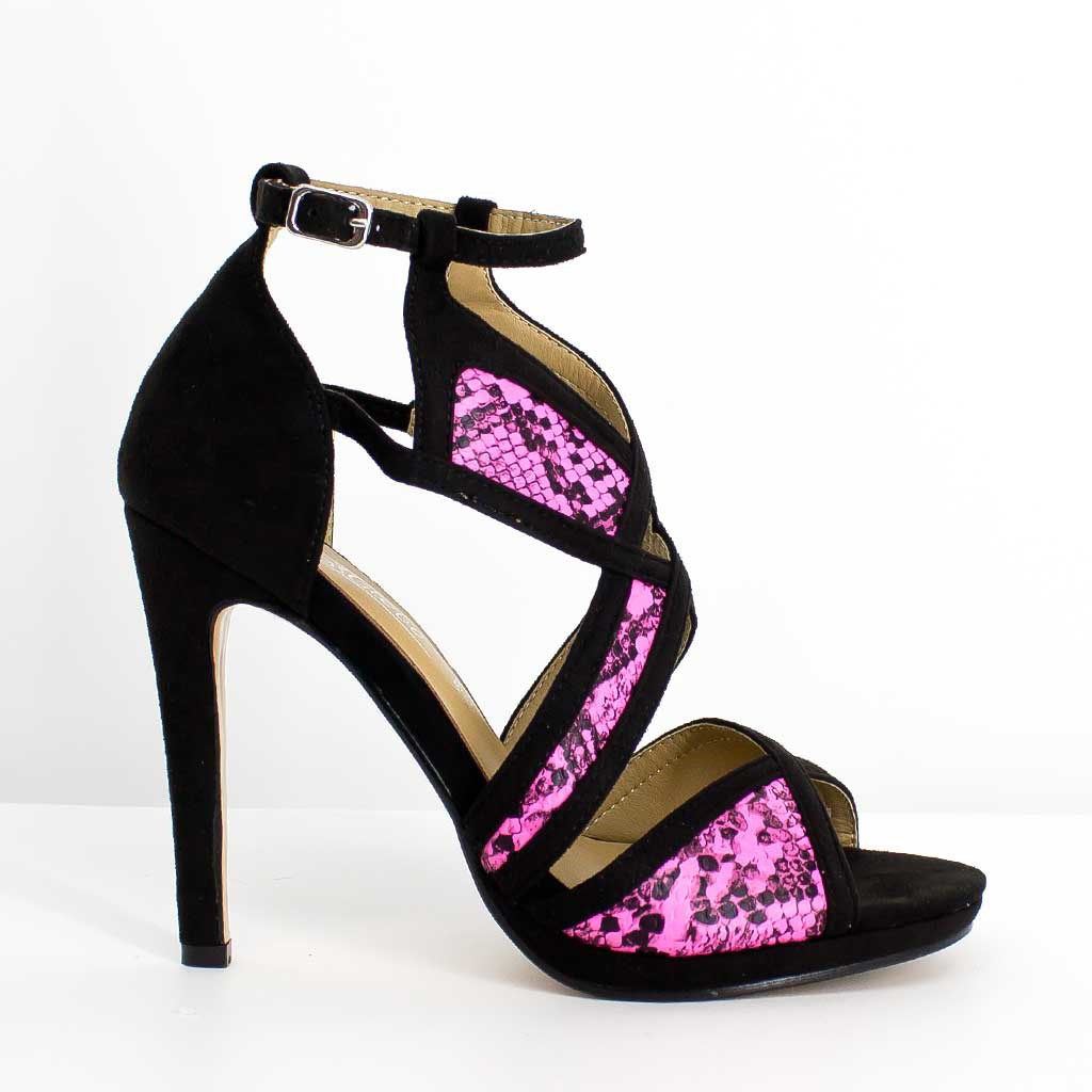 MISS GLOBO - Sandalo bicolor con inserti pitonati e sottopiede in VERA PELLE, tacco 11,5cm