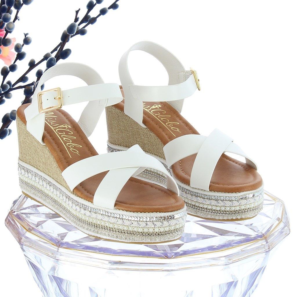 MISS GLOBO - Sandalo con fasce incrociate e zeppa decorata 8,5CM