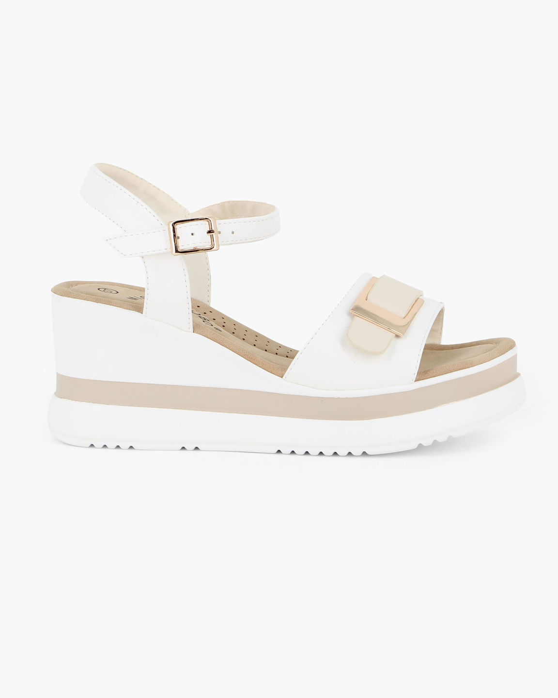 Caratterizzato da una silhouette pulita e moderna, questo modello si distingue per l'elegante fibbia rettangolare gold sulla fascia anteriore, che aggiunge un punto luce sofisticato perfetto per illuminare i tuoi outfit quotidiani.
