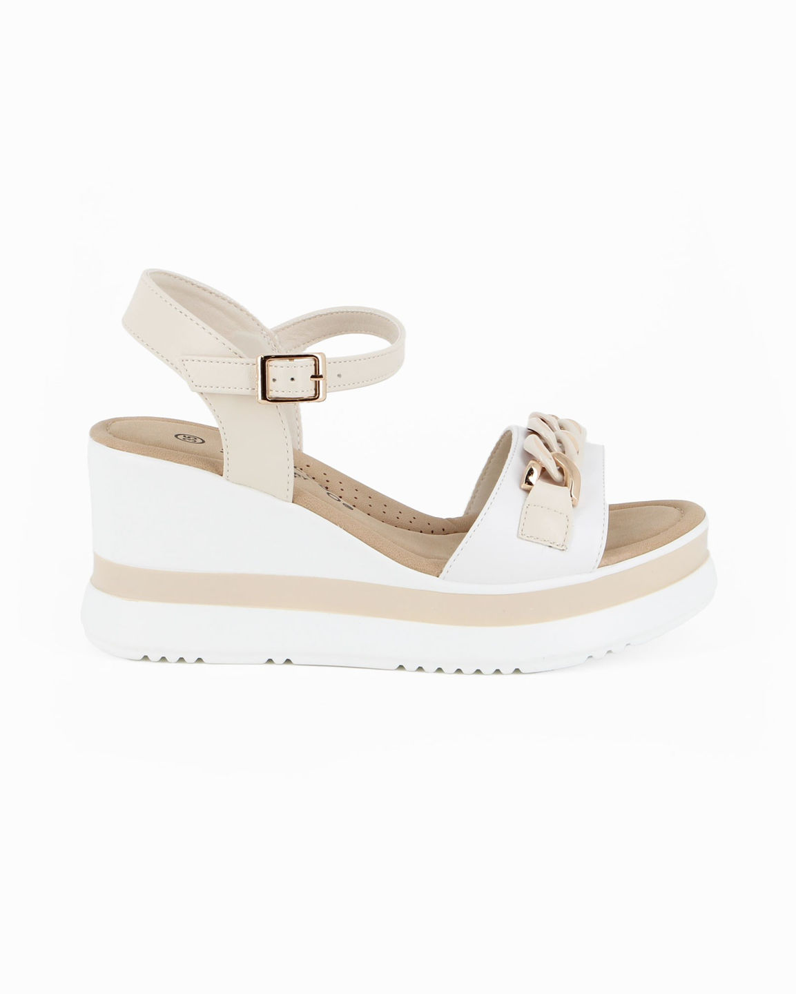 MISS GLOBO - Sandalo platform panna con catena sulla fascia frontale e cinturino alla caviglia