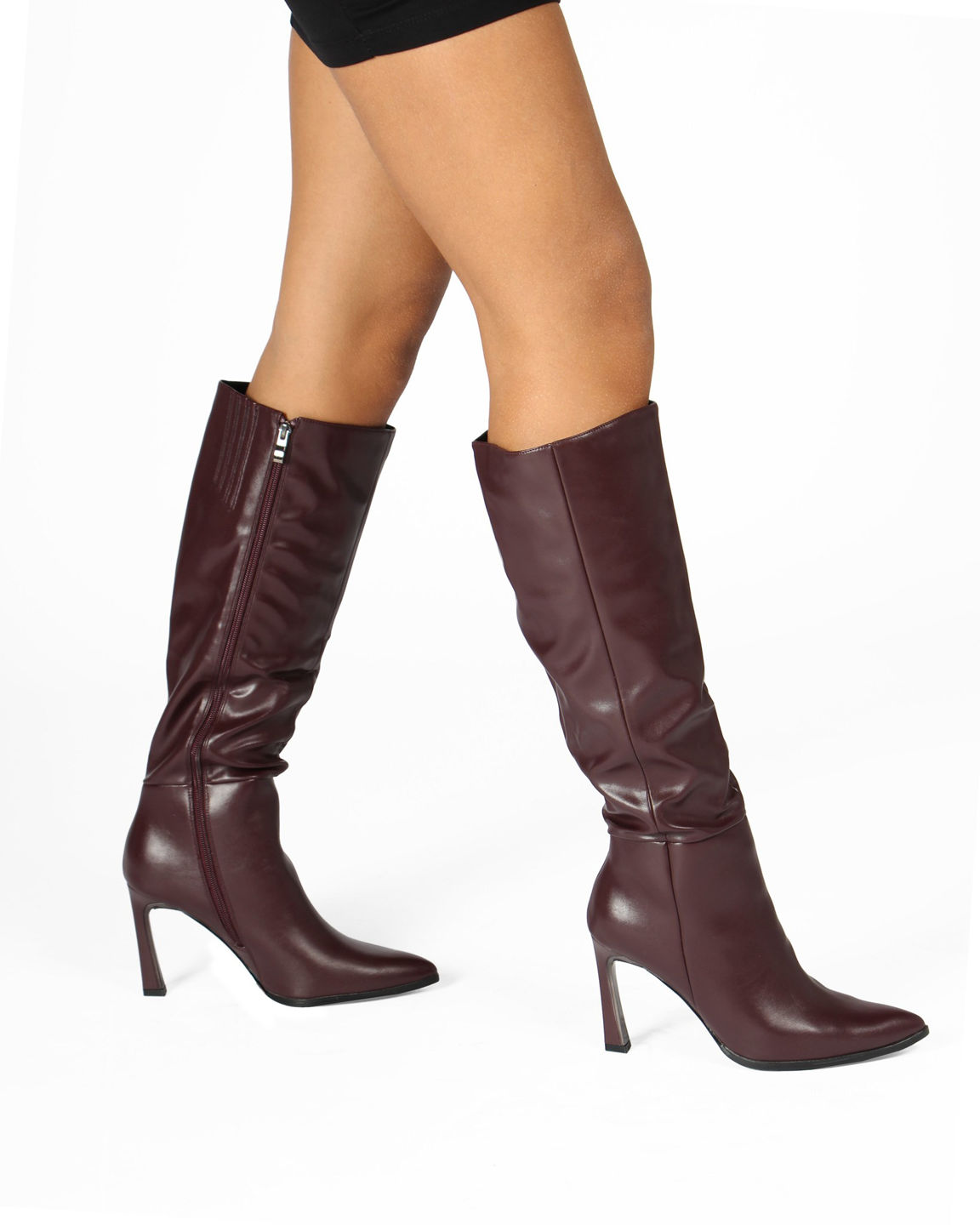 MISS GLOBO - Stivale bordeaux a punta con zip laterale, tacco 9CM