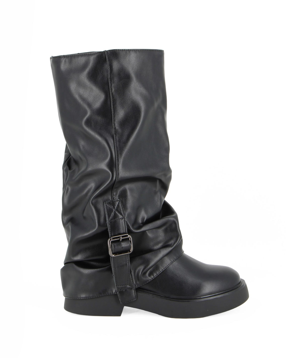 MISS GLOBO - Stivale nero con risvolto arricciato e zip laterale, tacco 4,5CM