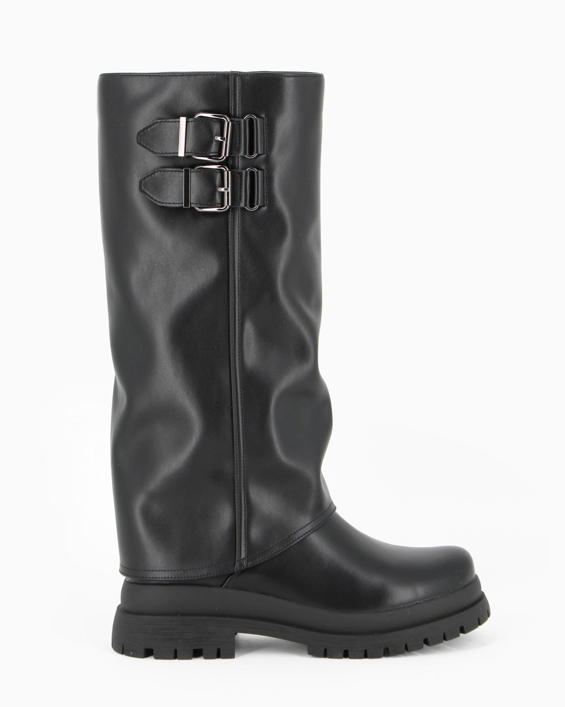 MISS GLOBO - Stivale nero con risvolto e doppia fibbia laterale, tacco 4,5CM