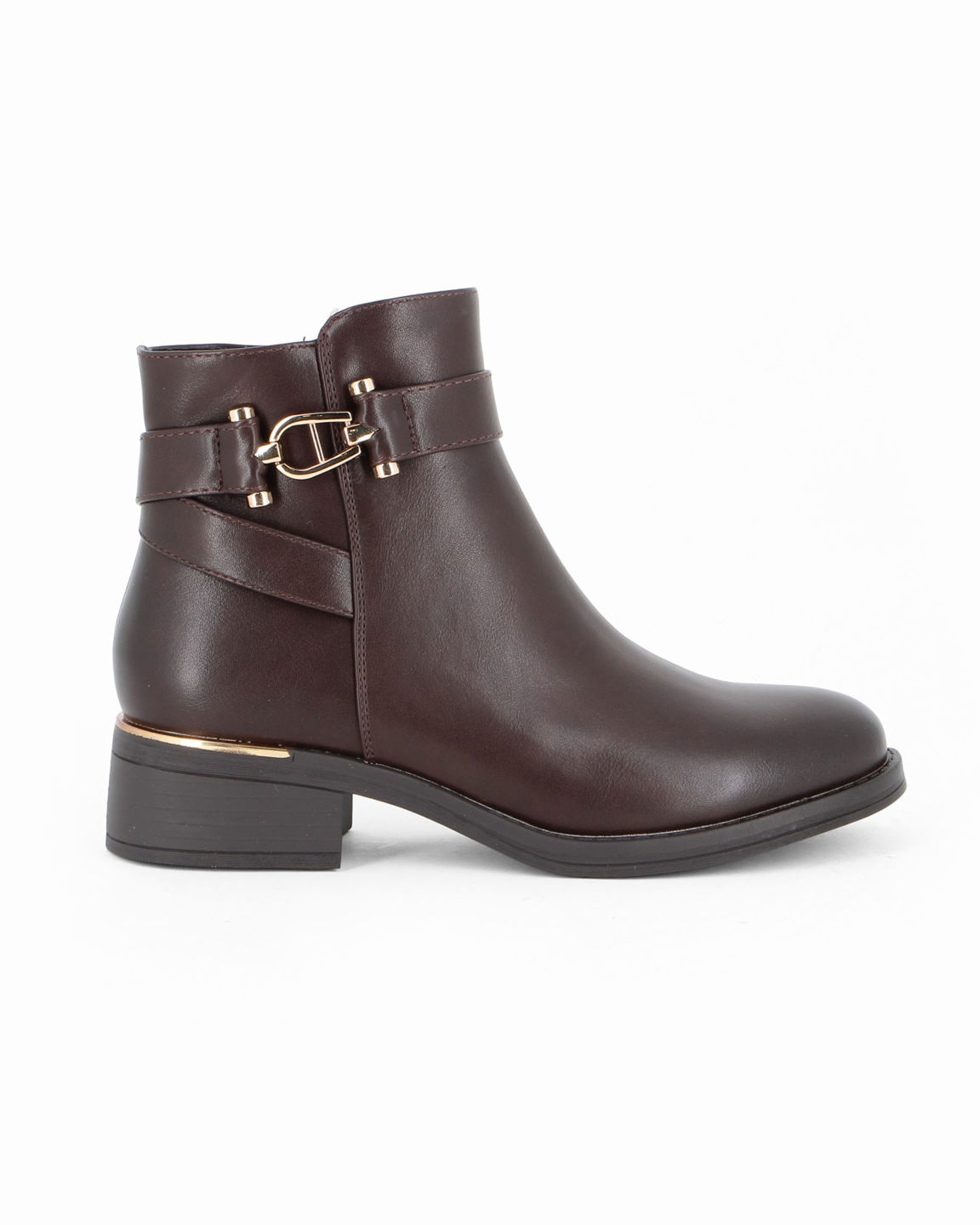 MISS GLOBO - Stivaletto testa moro con zip laterale e cinturino con morsetto, tacco 4CM
