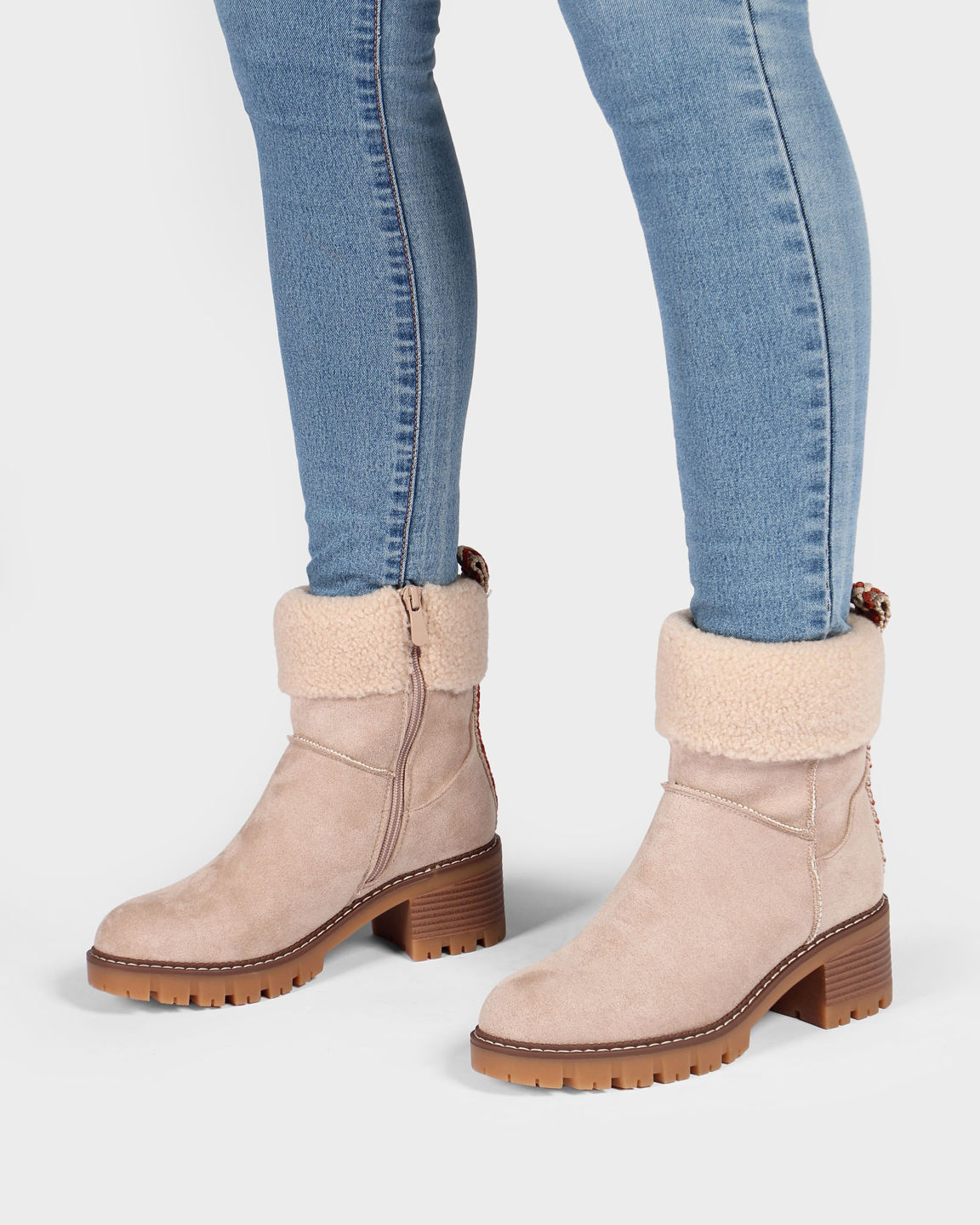 MISS GLOBO - Tronchetto beige scamosciato con pelliccia e zip laterale, tacco 5,5CM
