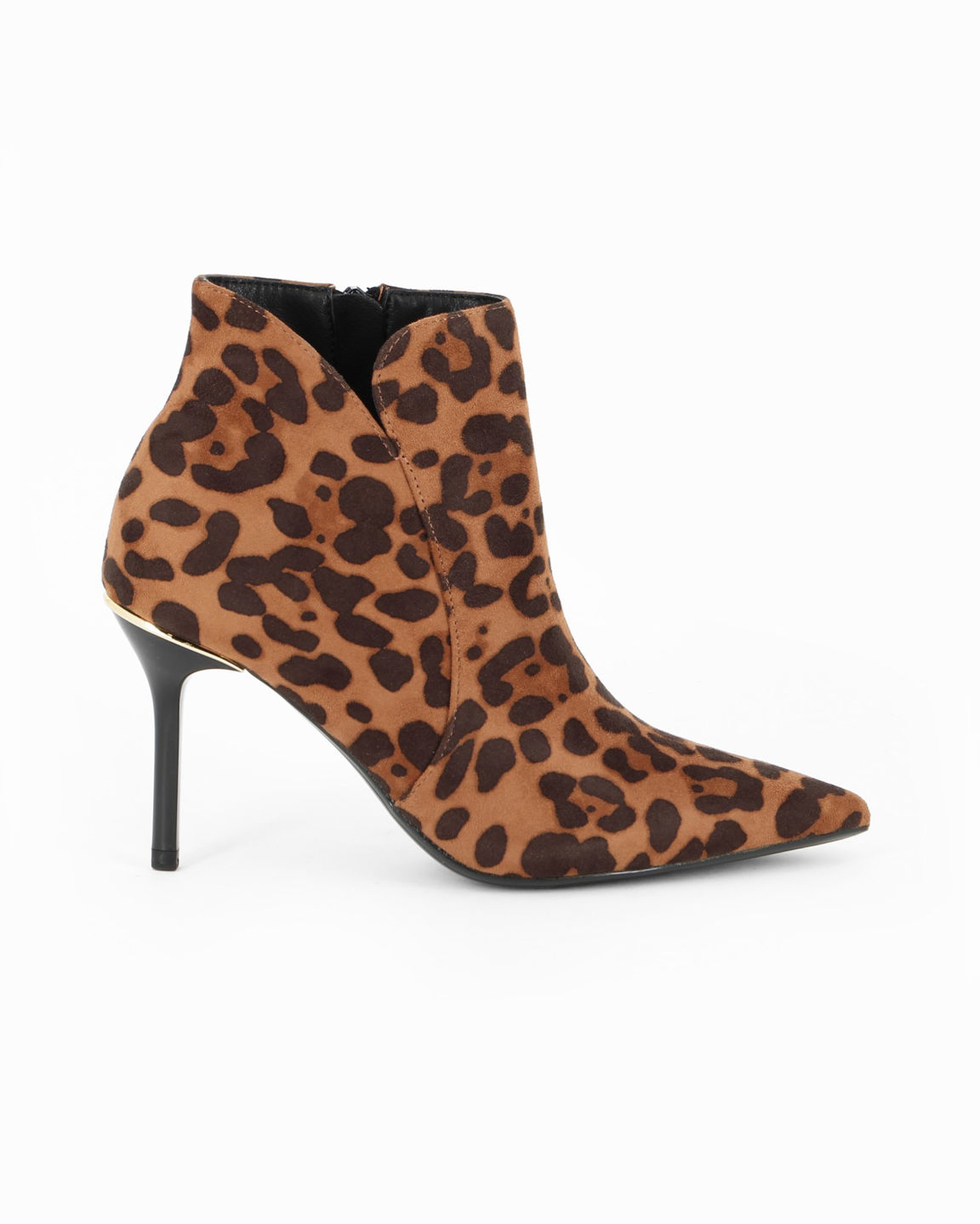 MISS GLOBO - Tronchetto leopardato scamosciato a punta con zip laterale, tacco 8,5CM