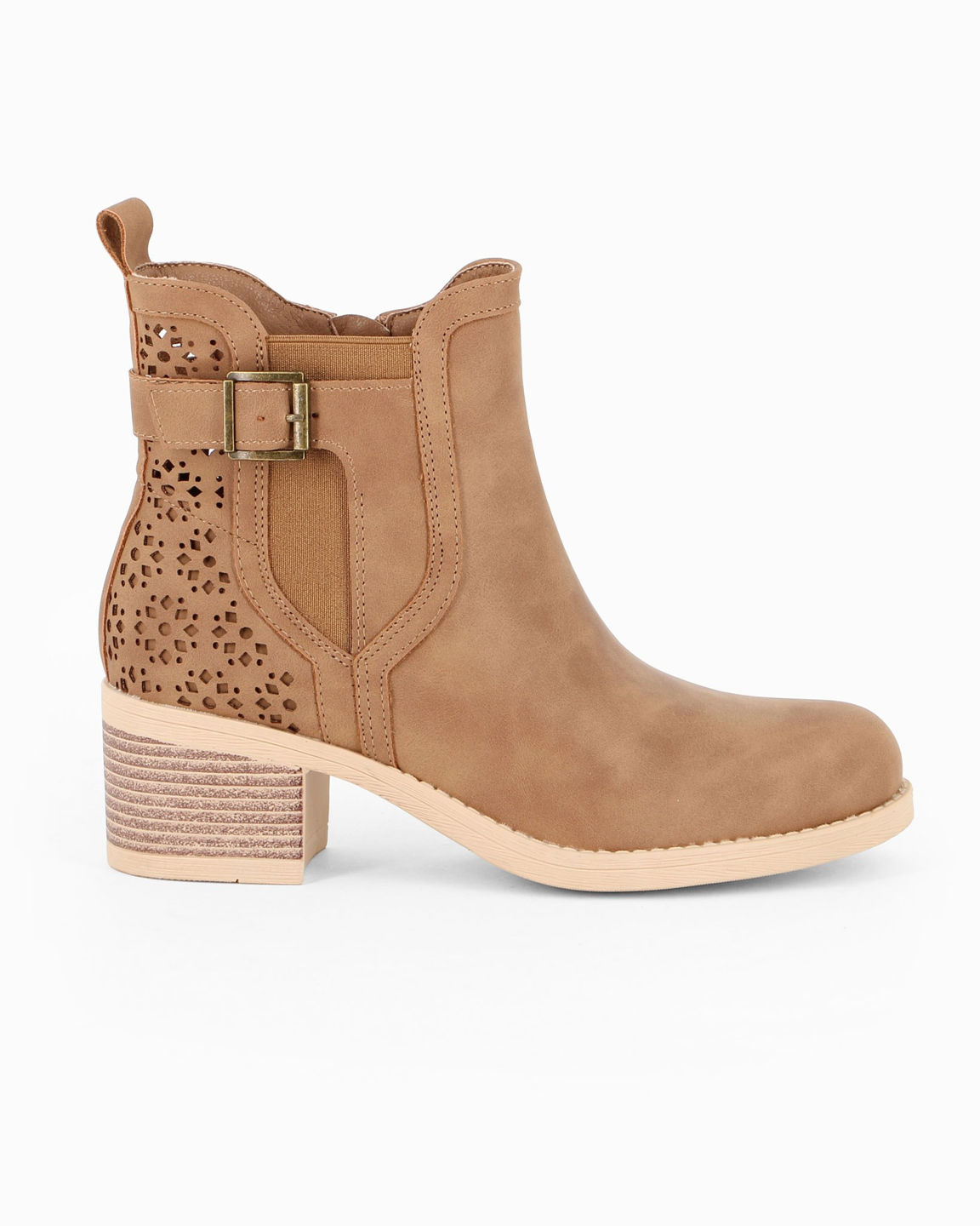 MISS GLOBO - Tronchetto beige traforato con zip laterale, tacco 5,5CM