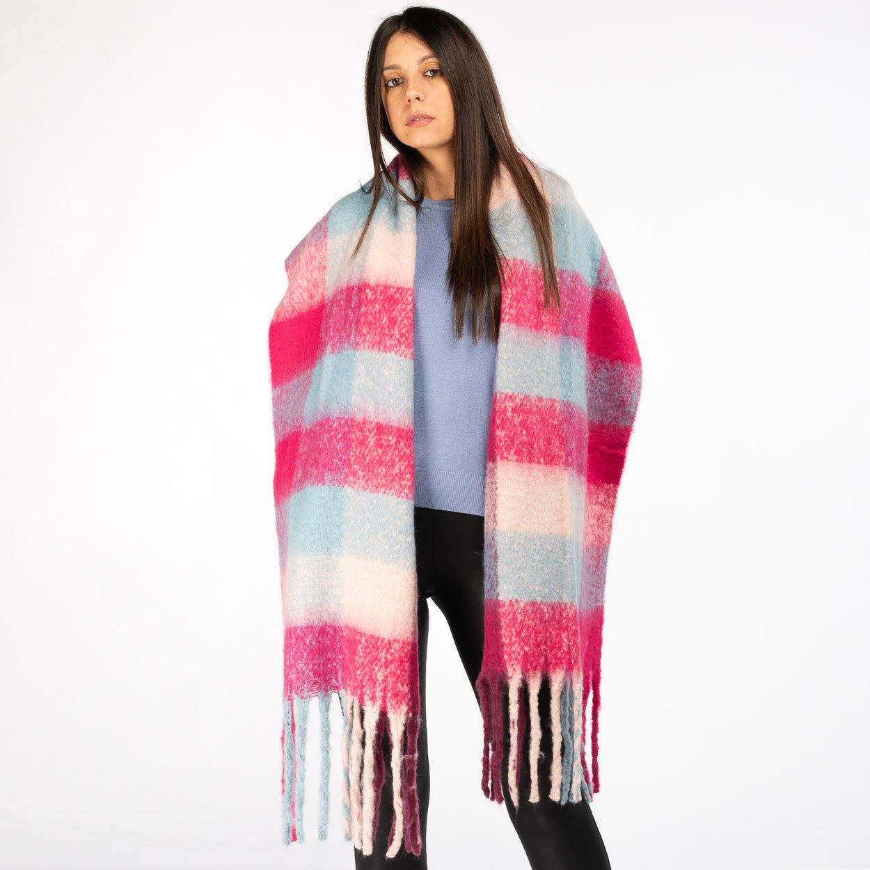 MONICA NARDUCCI - Sciarpa fuxia/celeste con frange