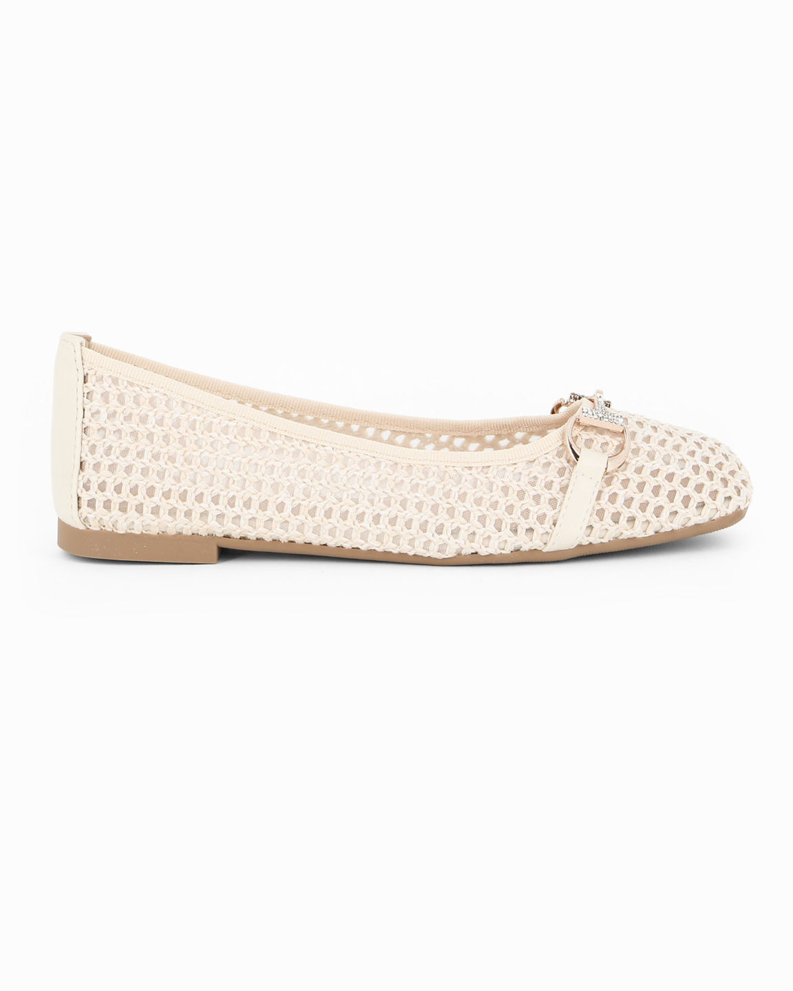 MY JEWELS - Ballerina avorio intrecciata con morsetto in strass