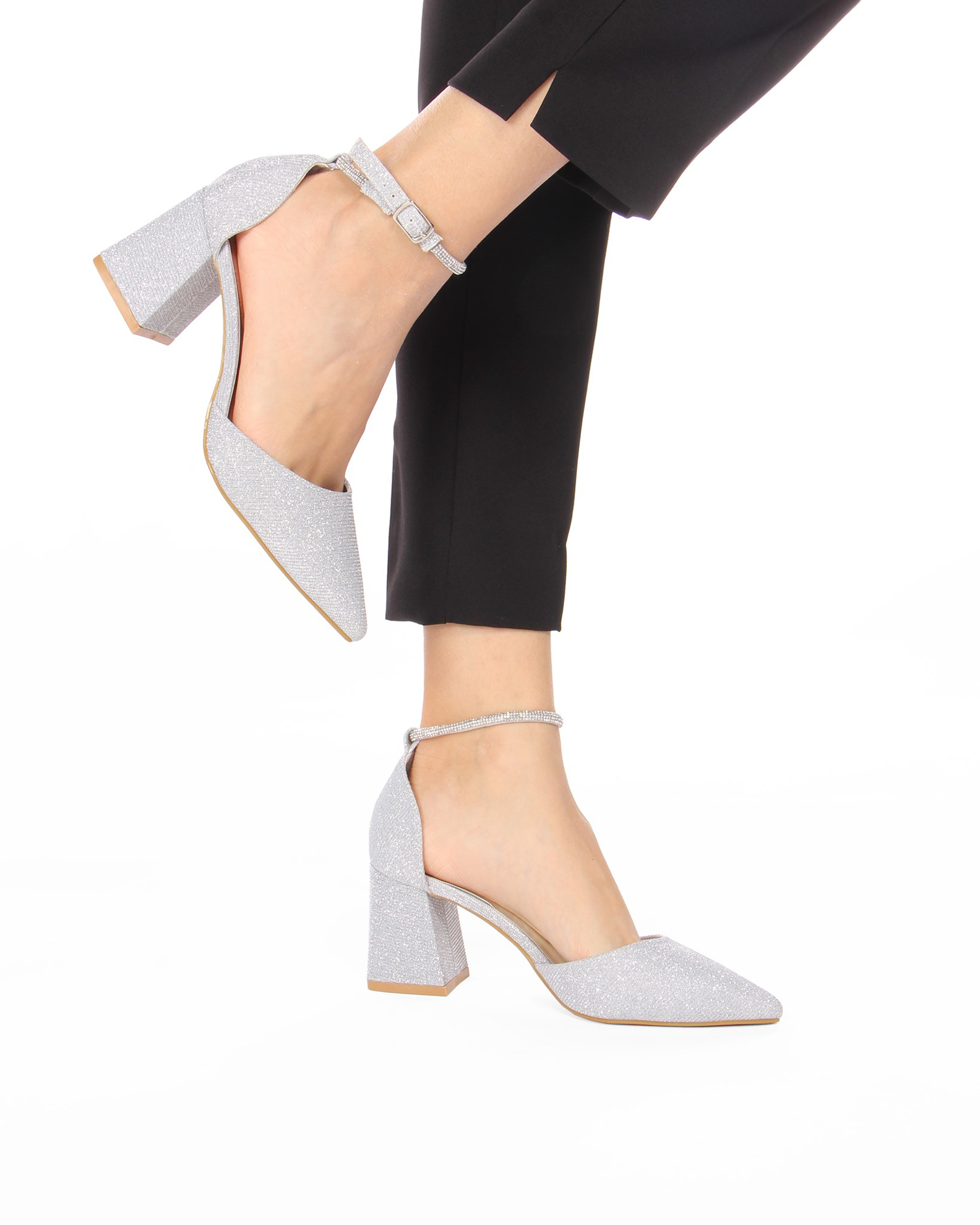 MY JEWELS - Décolleté argento con cinturino alla caviglia in strass - TACCO 6,5