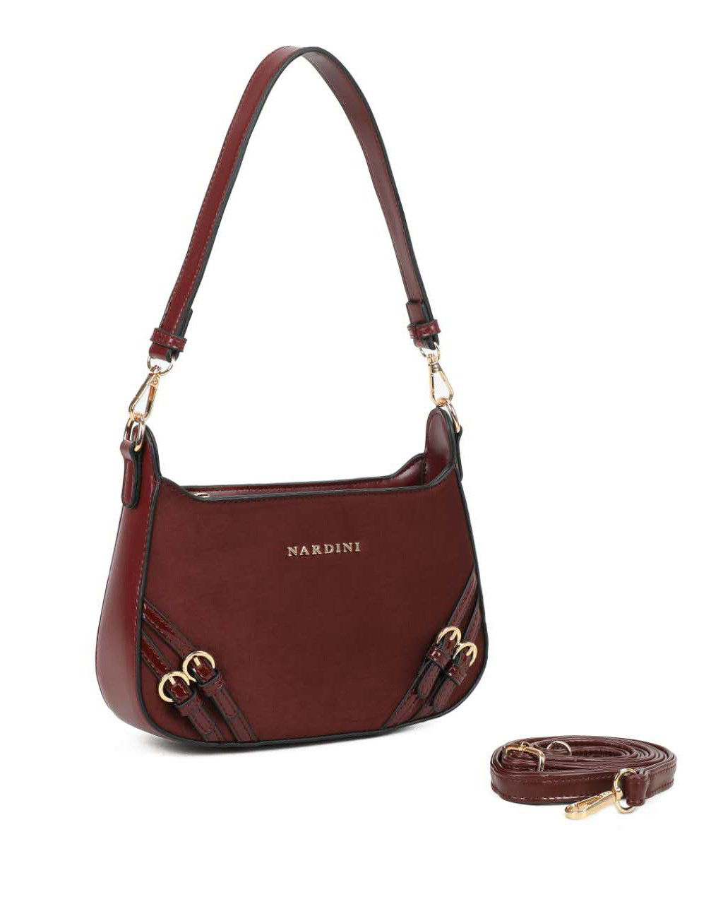 NARDINI - Borsa a spalla bordeaux con parte frontale scamosciata, tracolla removibile