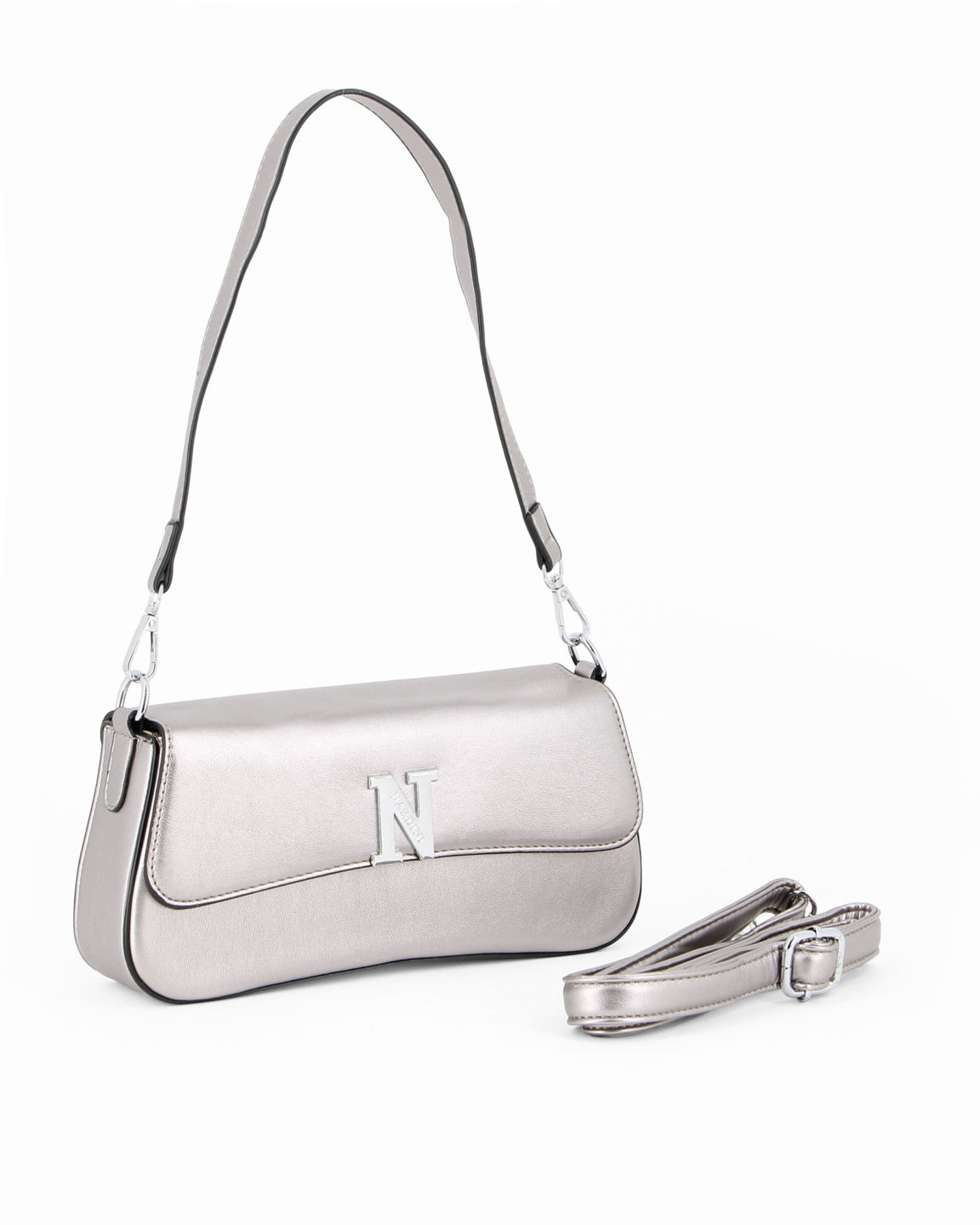 NARDINI - Borsa a spalla grigia con patta e tracolla removibile
