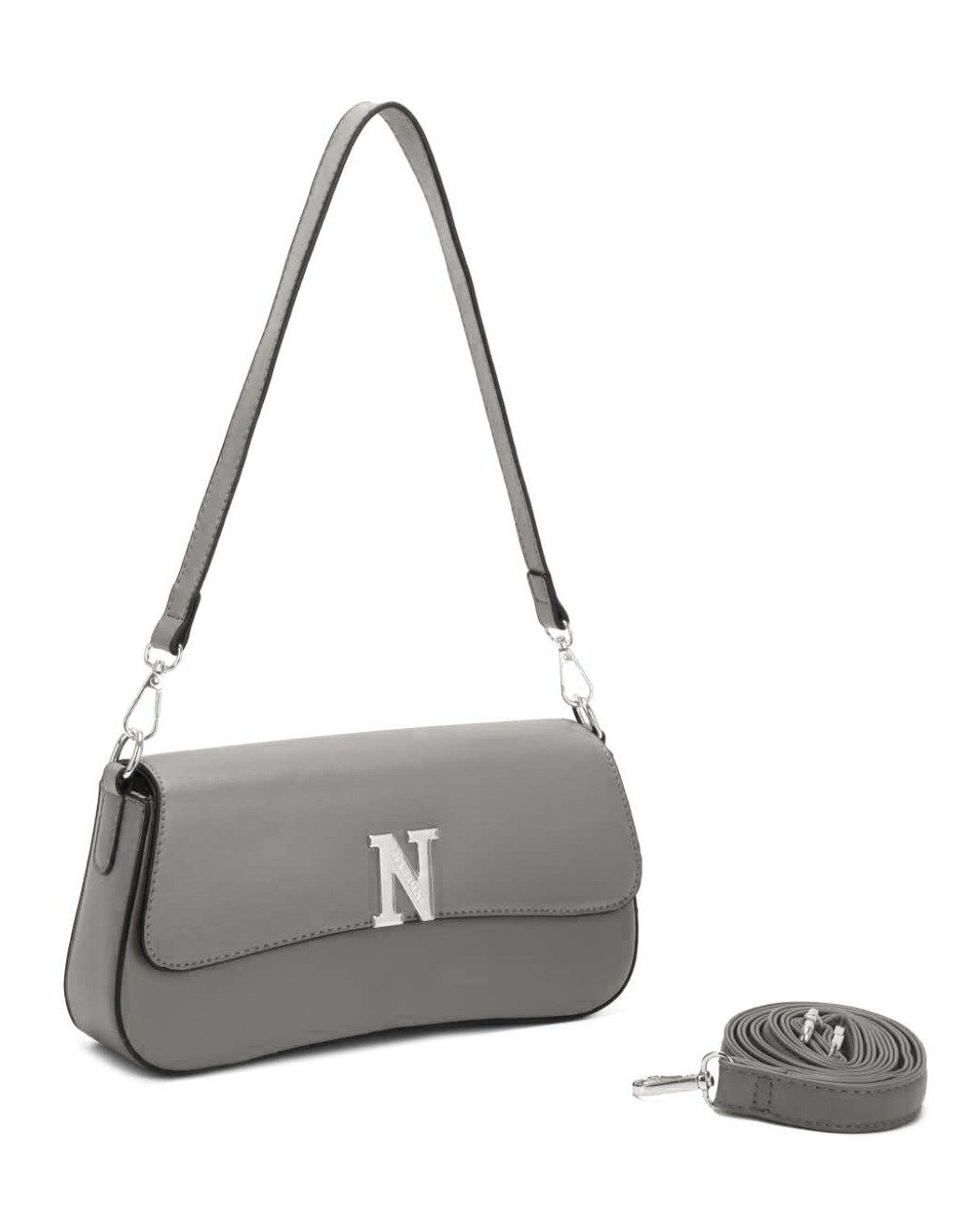 NARDINI - Borsa a spalla grigia con patta e tracolla removibile