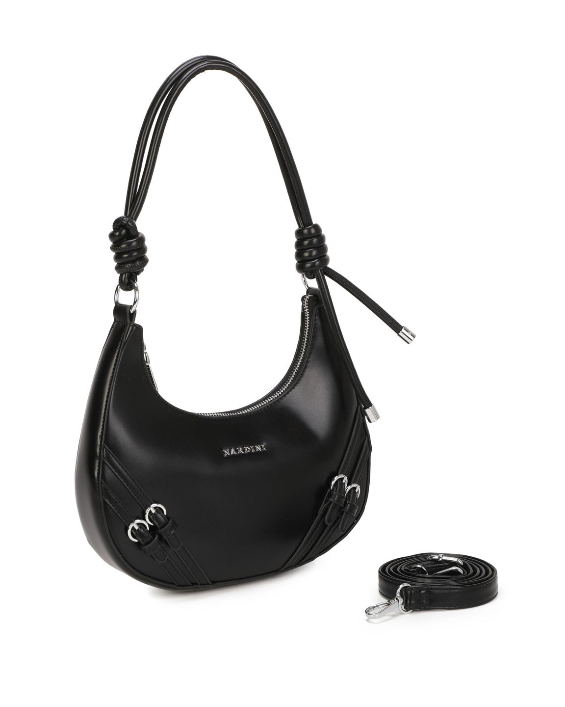 NARDINI - Borsa a spalla nera con fibbie frontali, tracolla removibile