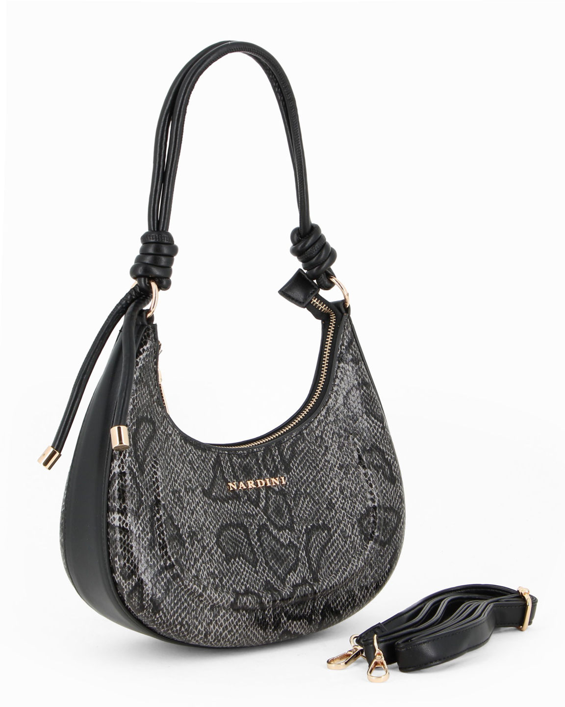 NARDINI - Borsa a spalla testa moro pitonata, tracolla removibile