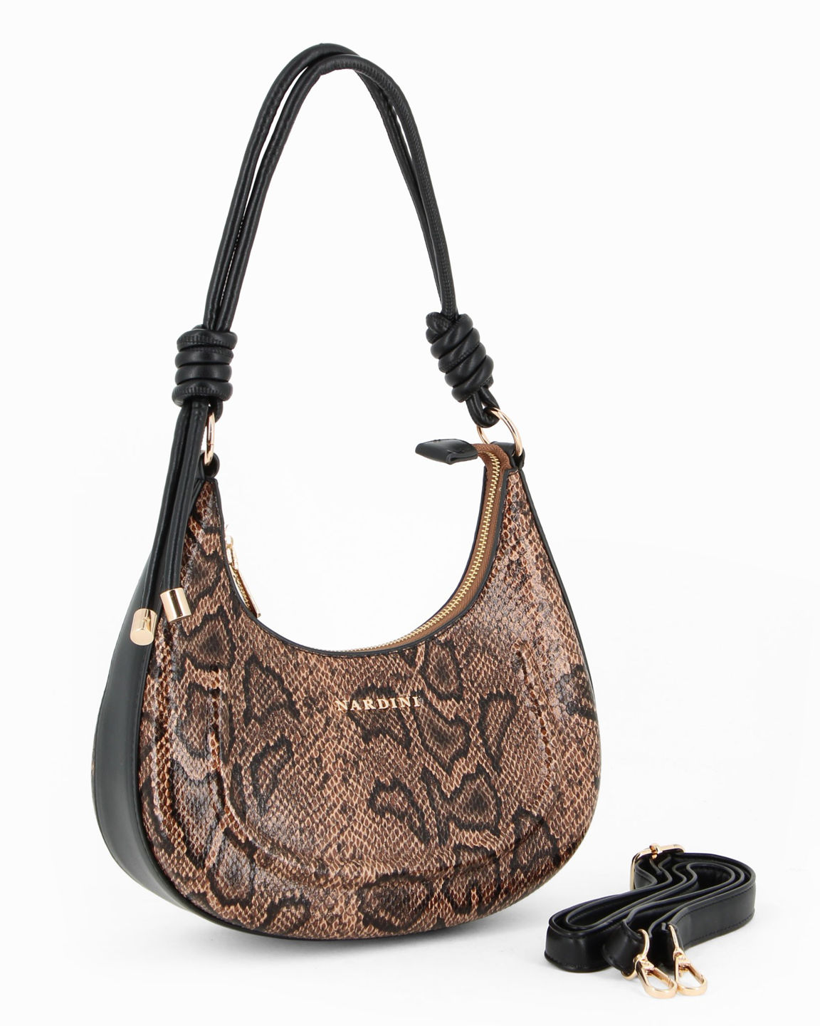 NARDINI - Borsa a spalla testa moro pitonata, tracolla removibile