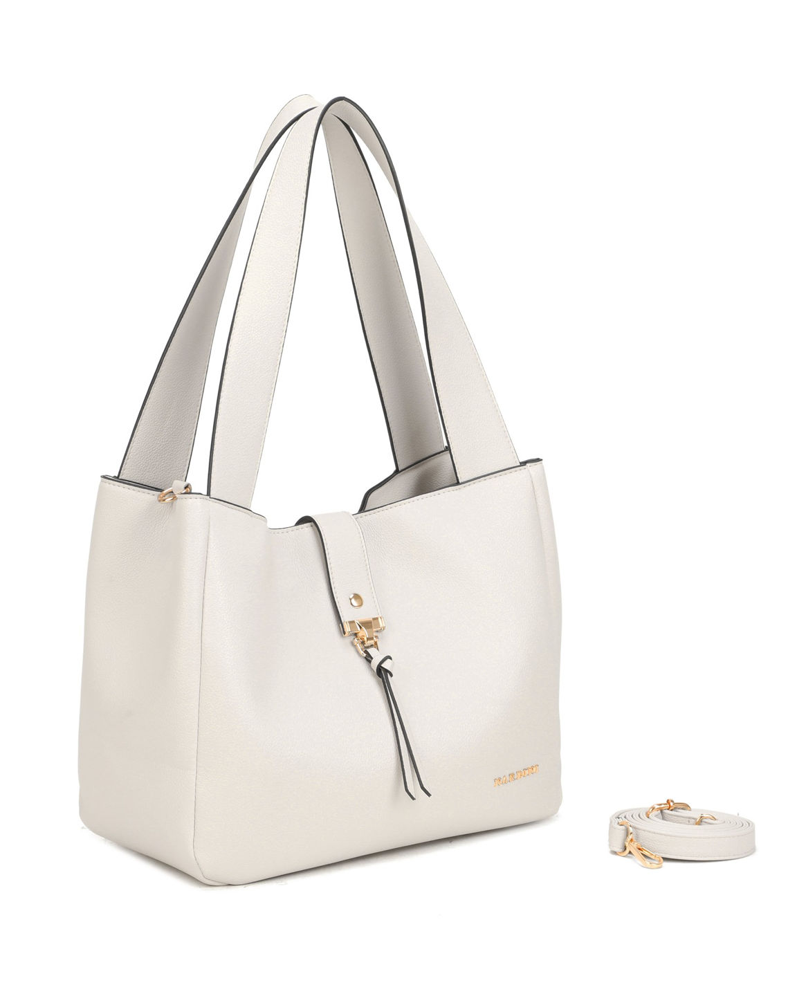 NARDINI - Borsa due manici perla con pattina, tracolla removibile