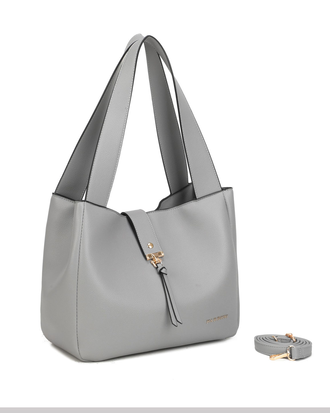NARDINI - Borsa due manici perla con pattina, tracolla removibile