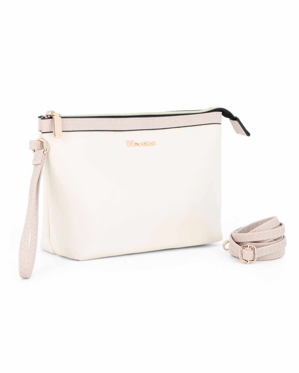 NARDINI - Pochette avorio con polsiera, tracolla removibile