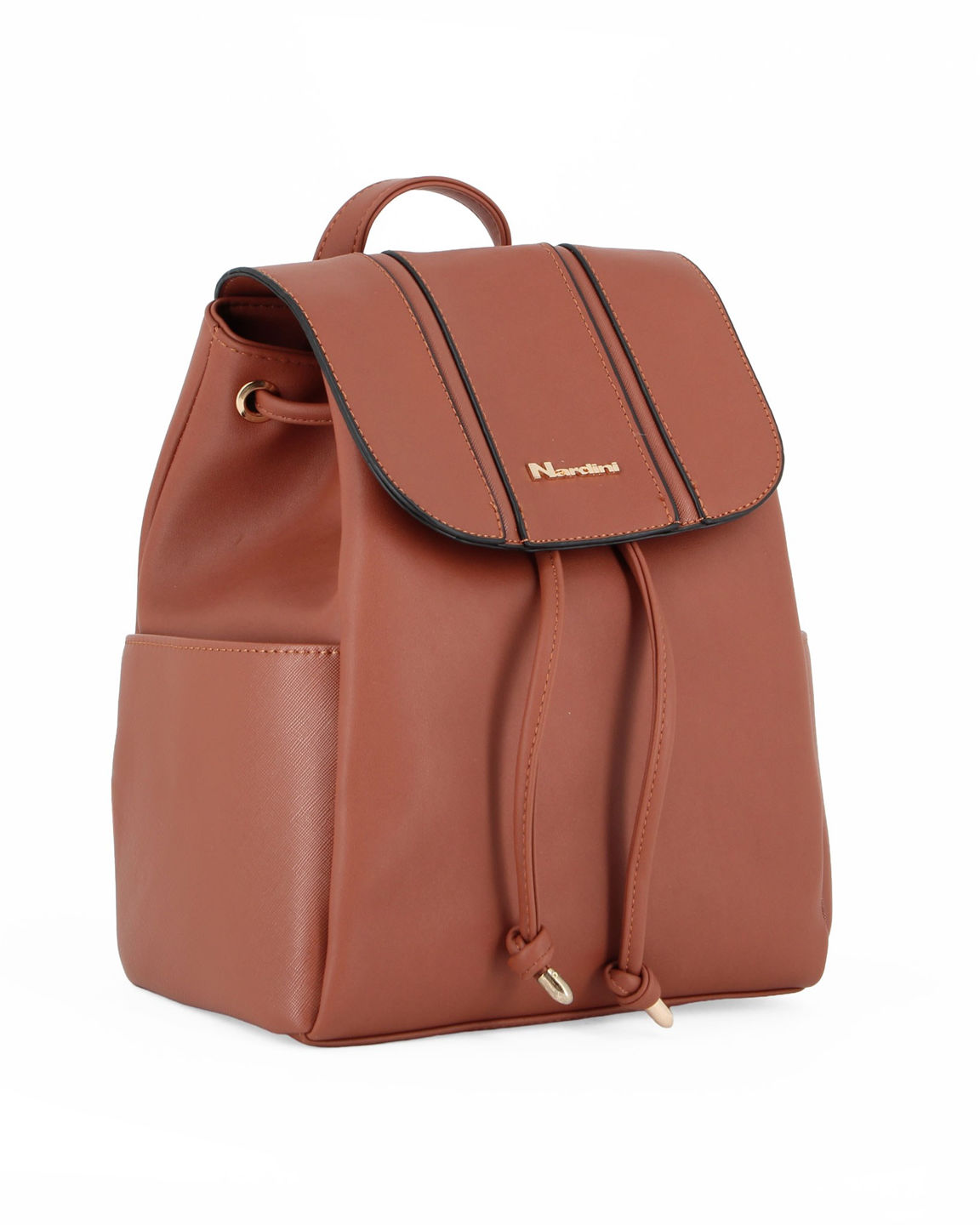 NARDINI - Zaino nocciola con due tasche laterali, patta e chiusura a coulisse