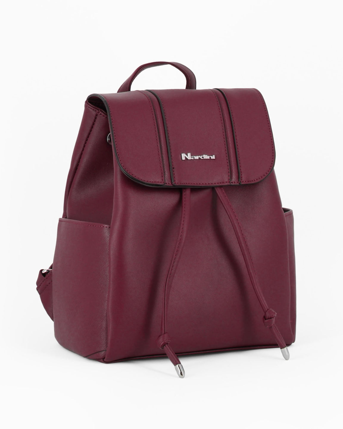 NARDINI - Zaino bordeaux con due tasche laterali, patta e chiusura a coulisse