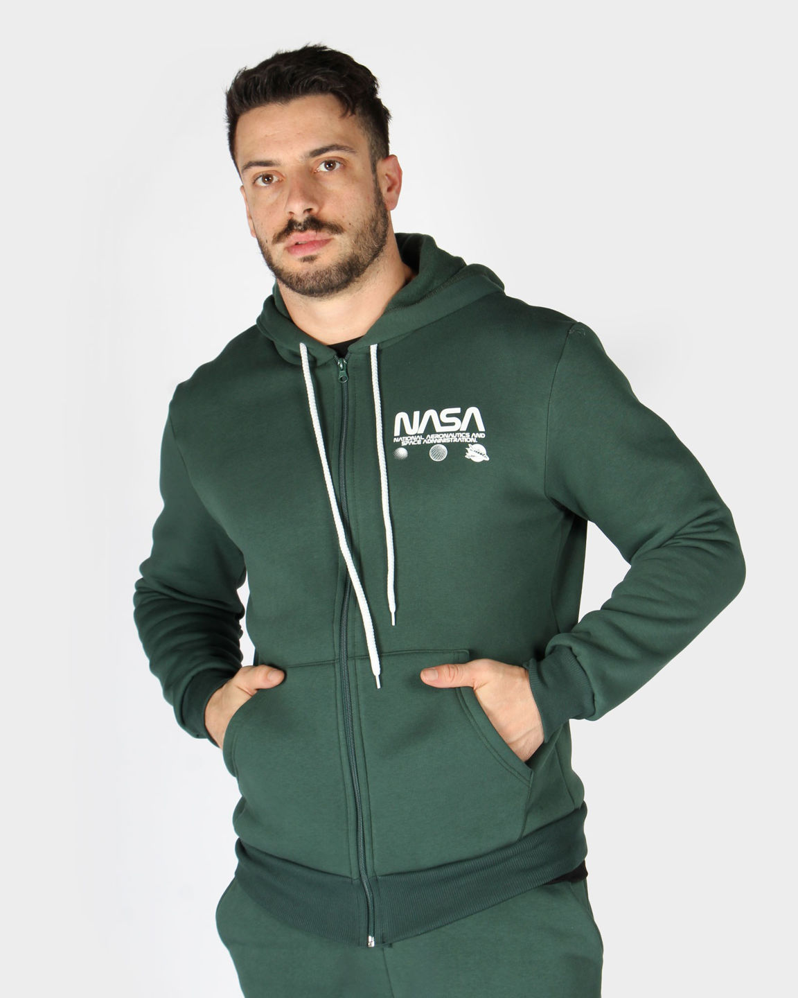 NASA - FELPA VERDE DA UOMO CON ZIP E CAPPUCCIO