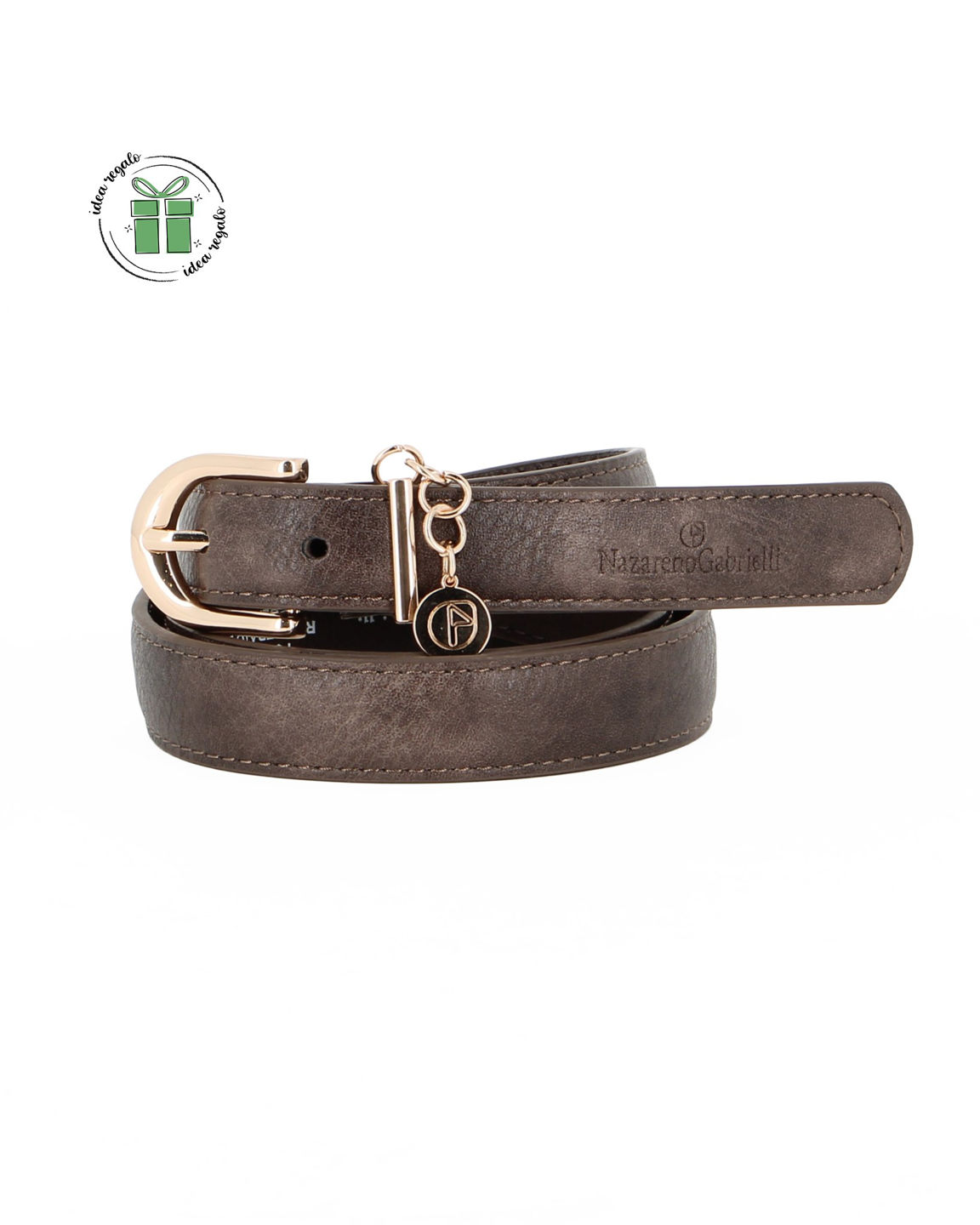 NAZARENO GABRIELLI - Cinta tabacco da donna con ciondolo loggato