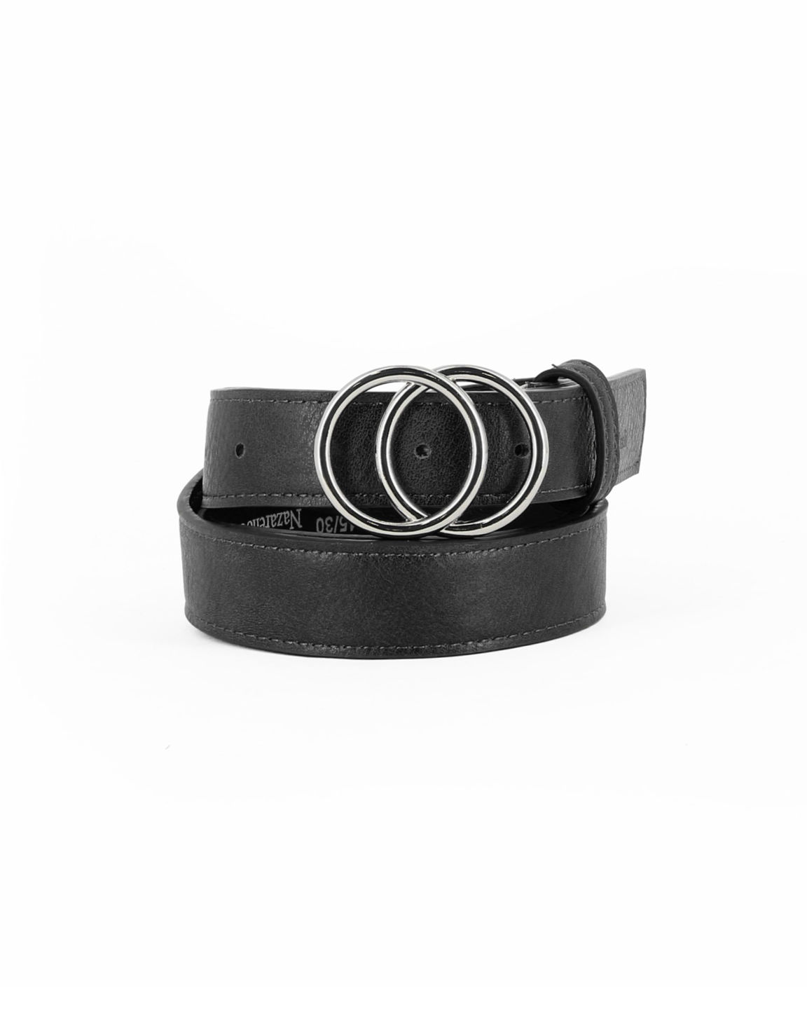NAZARENO GABRIELLI - Cinta nera da donna con fibbia a doppio cerchio
