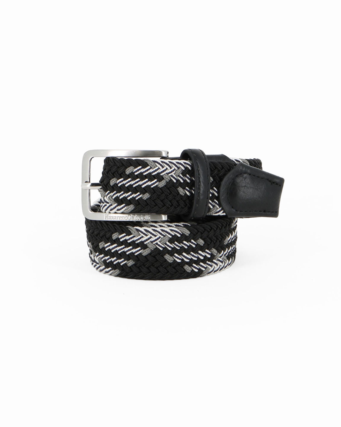NAZARENO GABRIELLI - Cinta nera/grigia/bianca intrecciata ed elasticizzata da uomo
