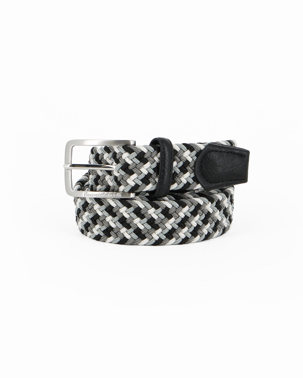 NAZARENO GABRIELLI - Cinta nera/grigia/bianca intrecciata ed elasticizzata da uomo
